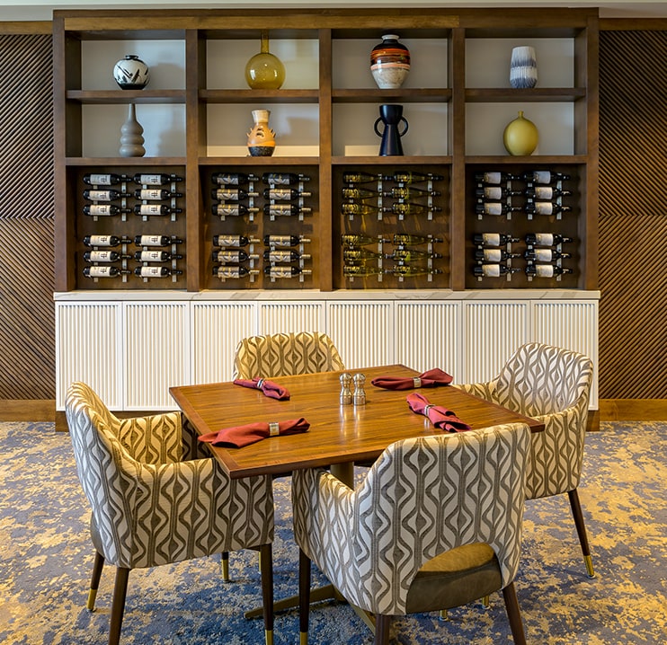 Experience the height of culinary excellence at The Ellsworth Supper Club, where independent living residents indulge in gourmet entrées amidst an atmosphere of refined elegance.